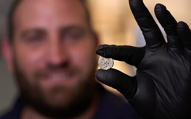 Image opposite: Yaniv David Levy, a numismatic specialist with the Israel Antiquities Authority, displays the coin dating from the first year of the Jewish revolt. Emil Aladjem/IAA.
