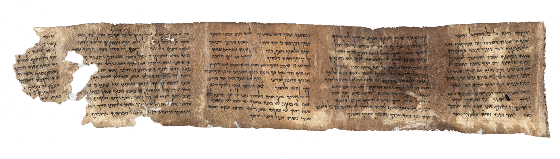 Le manuscrit comportant probablement la plus ancienne copie complète des Dix commandement du livre du Deutéronome (5,14-19). Le manuscrit est daté par des études précises, épigraphique et paléographique, de la période hérodienne entre 30 et 1 avant J.-C. © Musée d’Israël, Jérusalem.